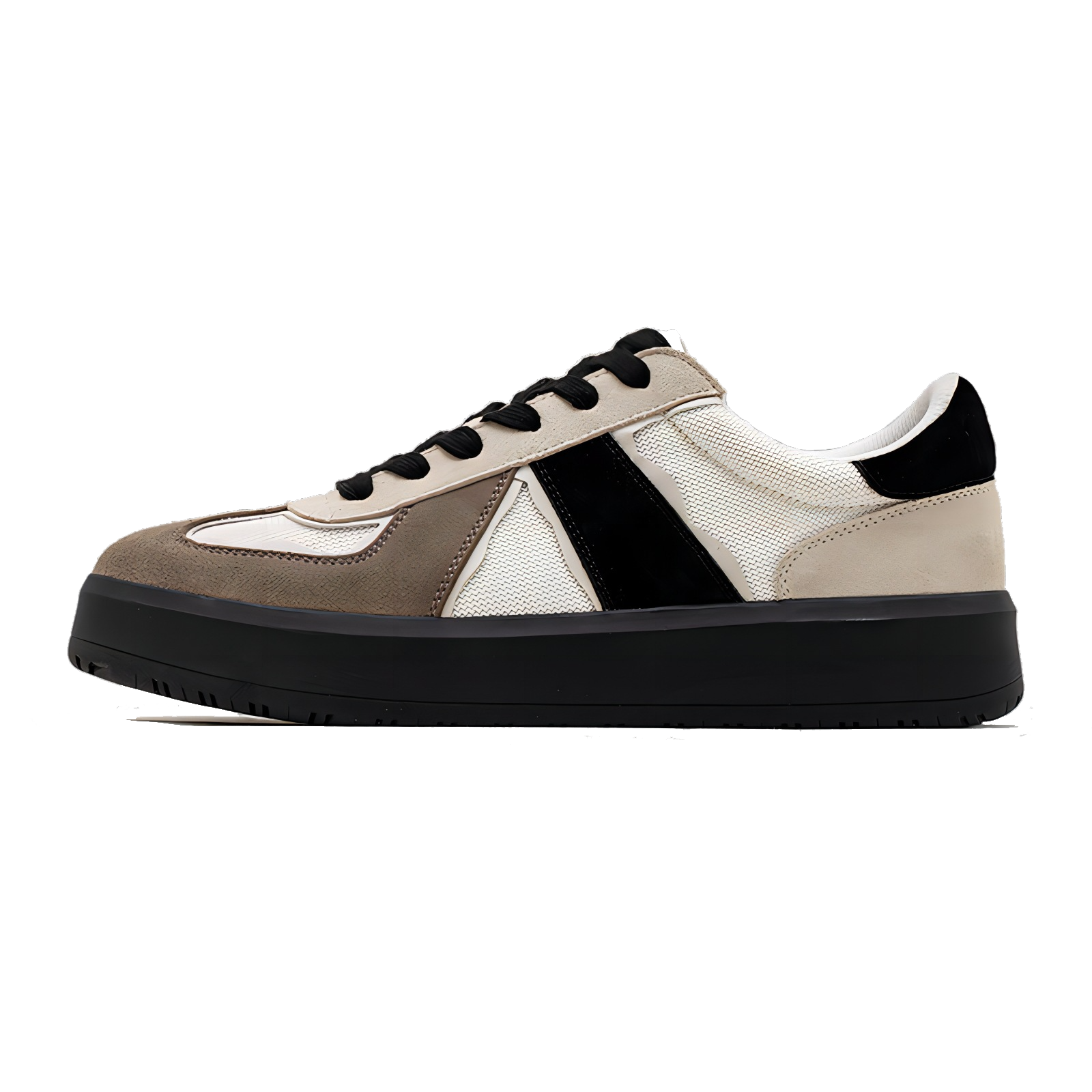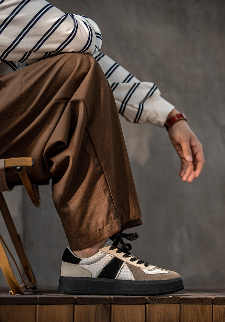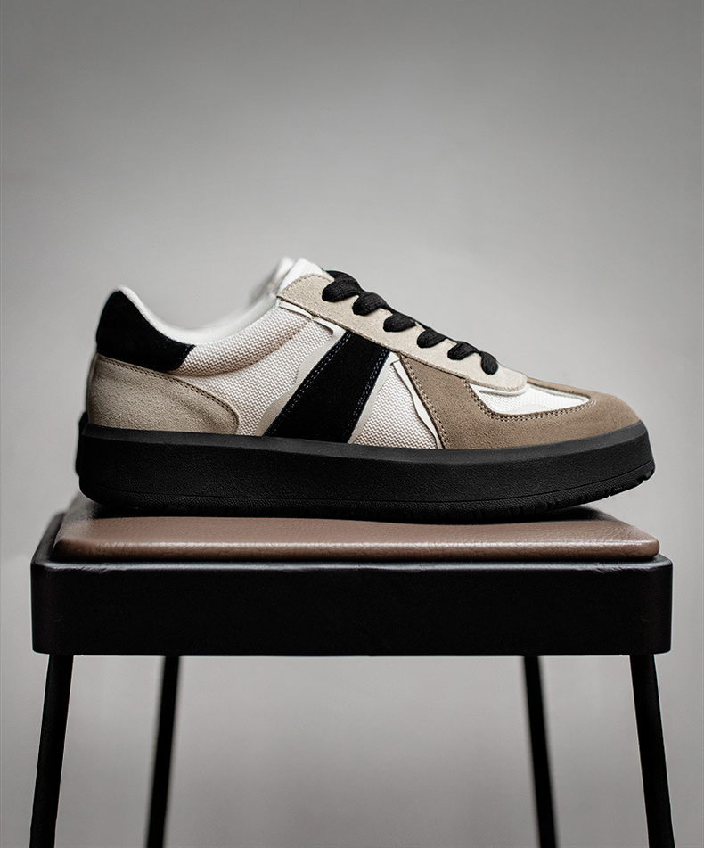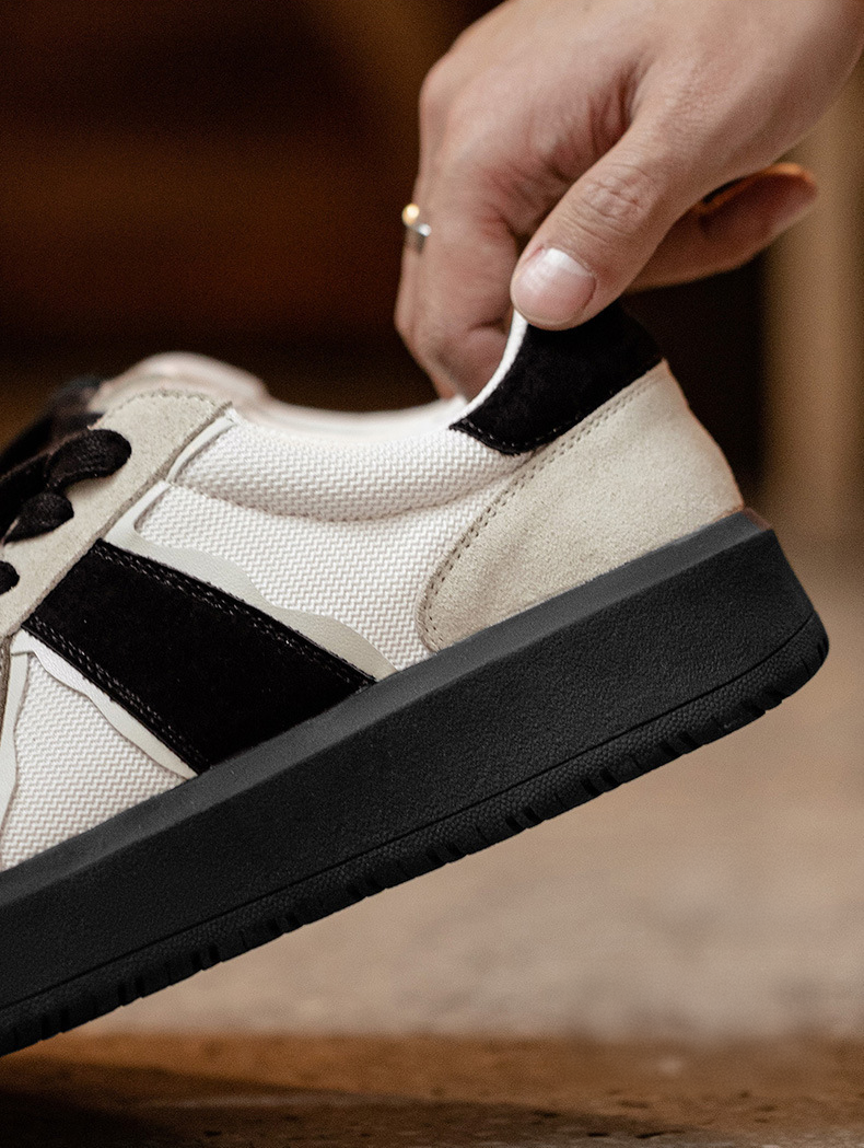 ベージュとブラックのコンビカラーが洗練された印象のスニーカー。スタイリッシュに足元を引き締めます。